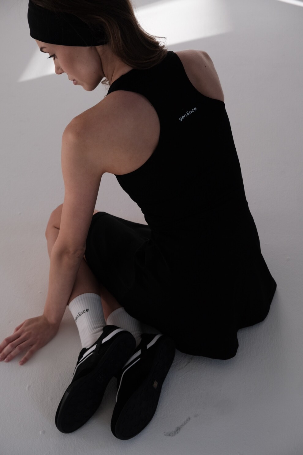Эластичная премиальная ткань деликатно повторяет движение тела, обеспечивая комфорт во время игры и сохраняя безупречность посадки вне корта.