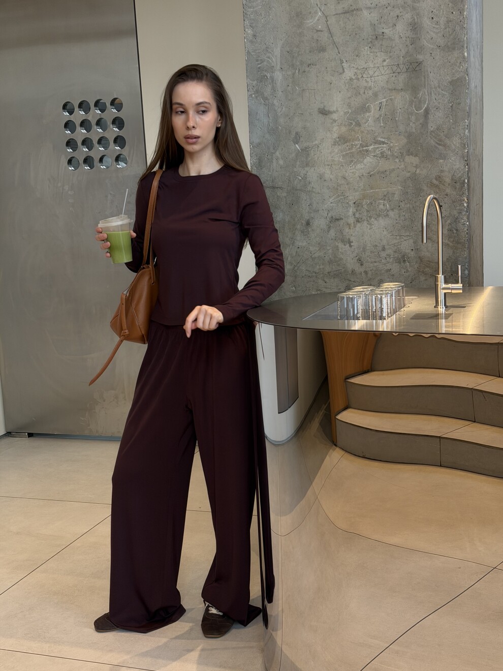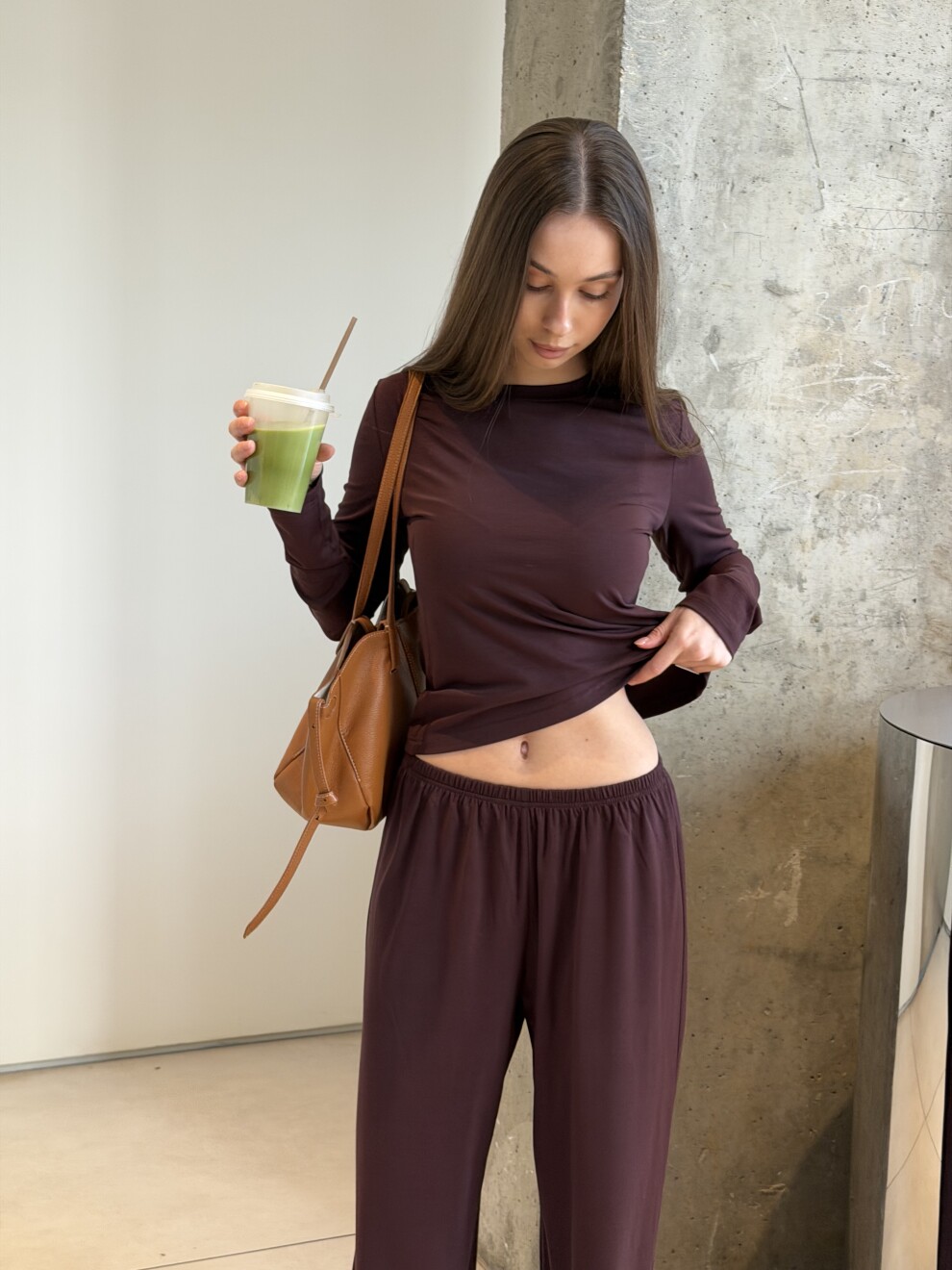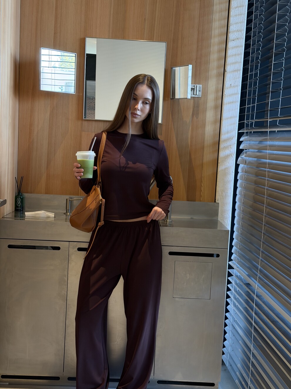 Заземлённая эстетика, которая делает образ спокойным и дорогим.